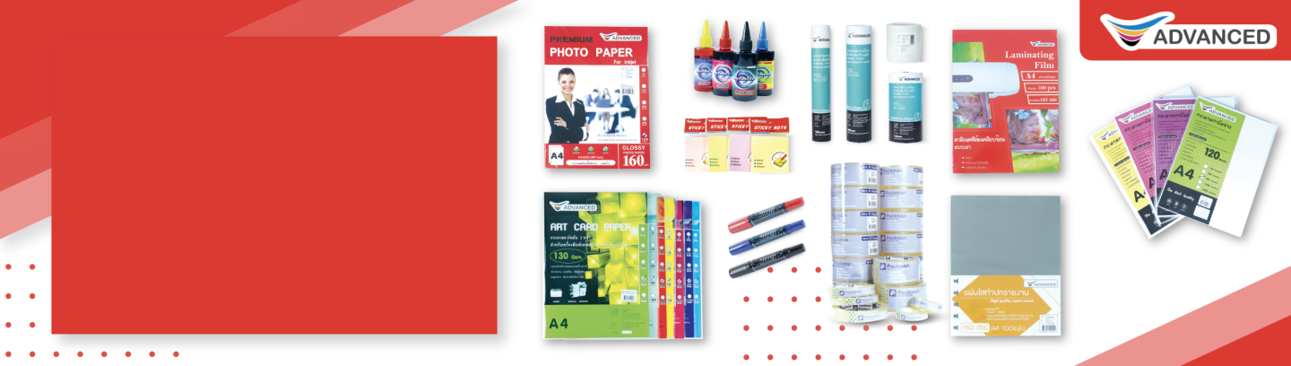 แอดวานซ์ แอคทีฟ ผู้นำด้านกระดาษและอุปกรณ์สำนักงานคุณภาพสูง เราจำหน่ายอุปกรณ์เครื่องเขียน, กระดาษโฟโต้คุณภาพสูง, กาวสองหน้า, เทปใสคุณภาพดี, แผ่นใสสำหรับปกรายงาน, พลาสติกเคลือบ, แผ่นเคลือบใส, หมึกพิมพ์, กระดาษความร้อน, สติ๊กเกอร์แบบต่างๆ และปากกามาร์คเกอร์คุณภาพดี ครบจบในที่เดียว พร้อมให้บริการทั้งลูกค้าทั่วไปและร้านขายเครื่องเขียนทั่วประเทศไทย!